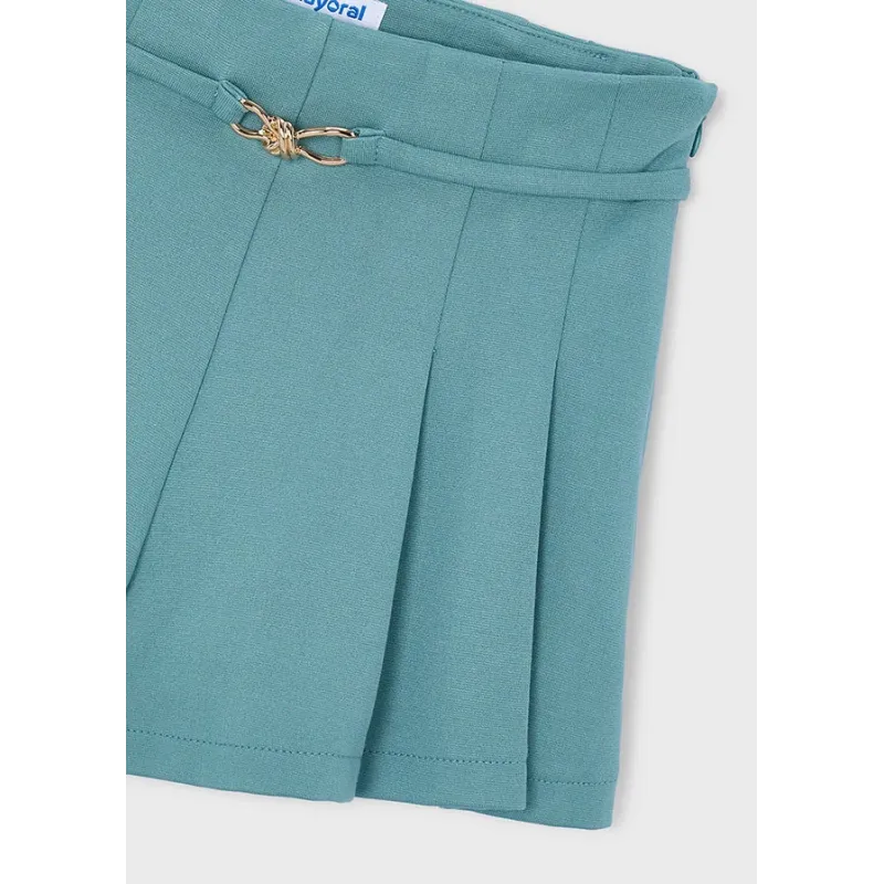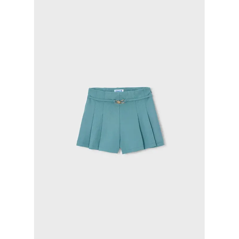 Gładkie szorty do połowy łydki dla dziewczynki. Elastyczna gumka w pasie dla lepszego dopasowania. Model plisowany. Skład: 69% Poliester, 29% Wiskoza, 2% Elastan.